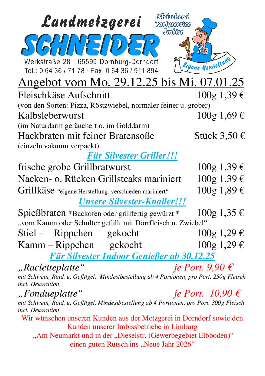 Besuchen Sie unsere Metzgerei oder einen unserer zwei Imbiss-Betriebe in Limburg an der Lahn